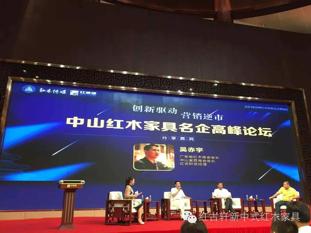 大會以如何逆勢而上,逆市破局為題拉開大幕,中國家具協(xié)會副理事長、廣東省紅木商會會長、中山家具商會會長、紅古軒總經(jīng)理吳赤宇先生,作為特邀嘉賓,應(yīng)邀出席大會分享心得。
